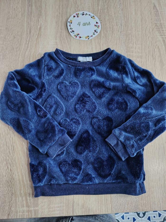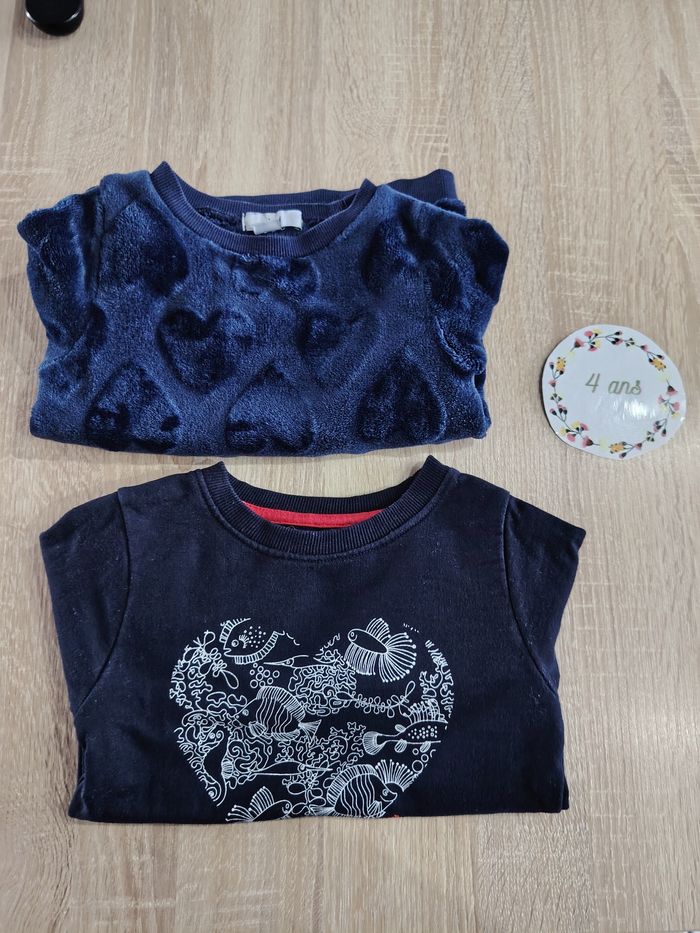 Lot de 2 pulls fille dans les tons bleu marine en taille 4 ans ✅ Pull bleu tout doux motifs cœur en relief La Halle en très bon état ✅ Sweat bleu marine terre de Marin en très bon état peu porté car offert trop tard à ma fille