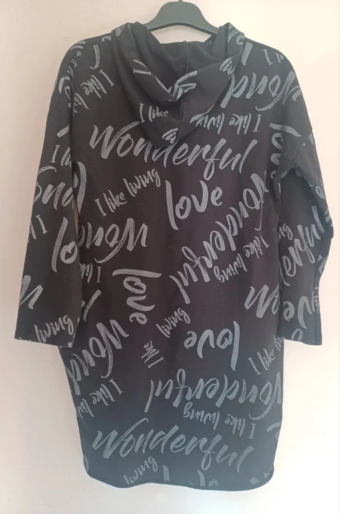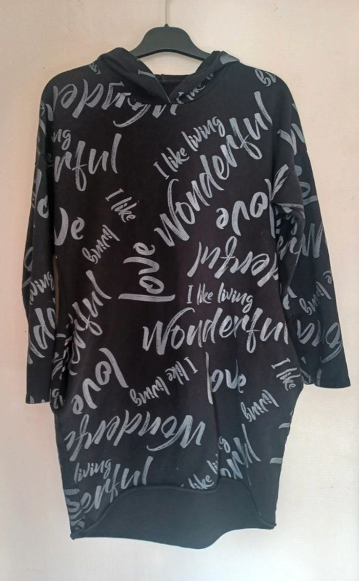 🖤Tunique à capuche🖤 Manches longues Poches de chaque côté Manque le cordon à la capuche Très bon état Largeur aisselle à aisselle 56cm Longueur devant 75cm Longueur derrière 85cm