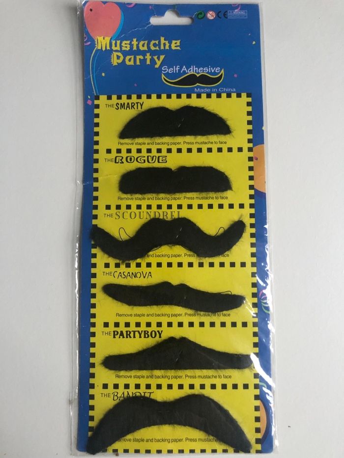 Je vends six moustaches pour déguisement, neuves.