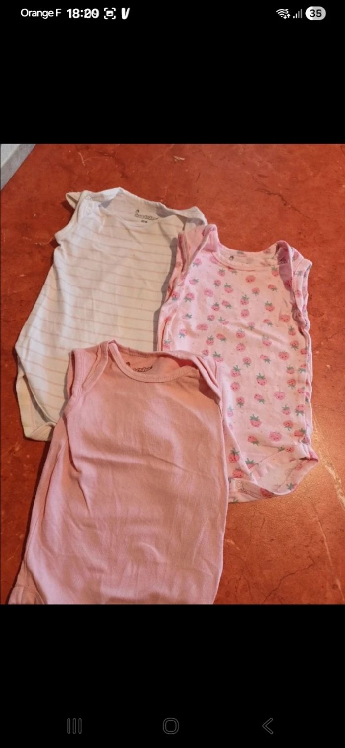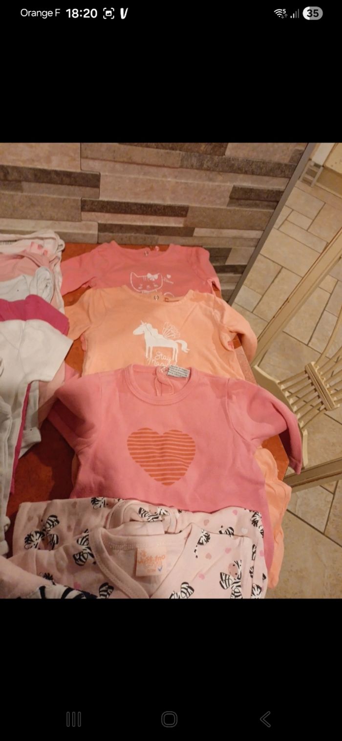 Lot comprenant 4 pyjamas fin avec pieds dont un avec body assorti 8 bodies manches courtes 8 robes 3 T.shirts manches courtes 2 shorts 1 combinaison 4 leggings 2 pantalons 1 combinaison d été 1 ensemble T.shirt / legging Possibilité d avoir plus de photos Vous pouvez retrouver tous ces articles à l unité dans mon dressing