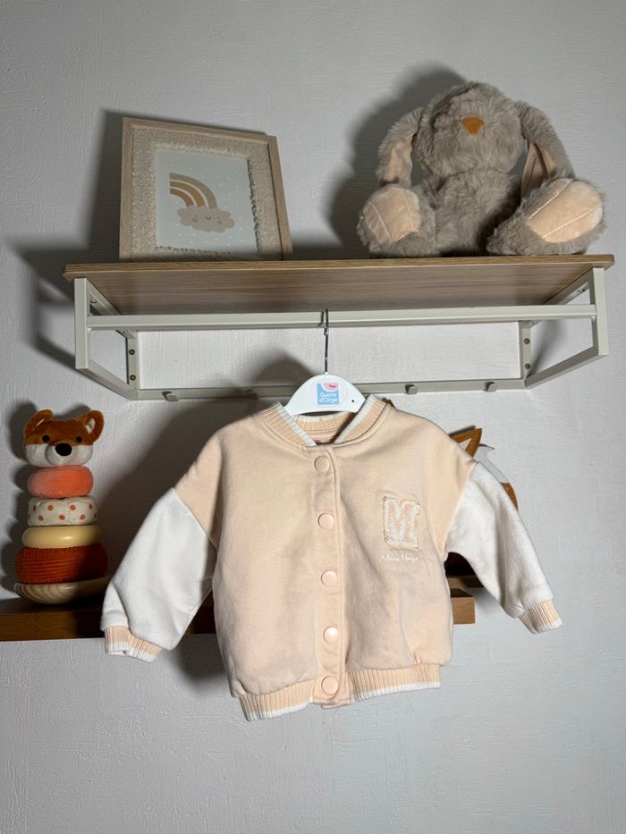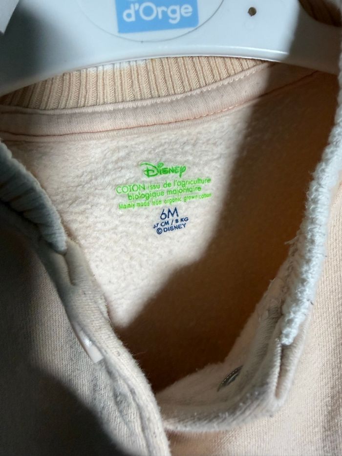 Jolie ensemble bébé fille composé de : • un bomber beige / blanc Minnie • un t-shirt manches longues rose orchestra • un legging côtelé gris foncé Kiabi • une paire de chaussettes rose imprimé petit chien Taille 6 mois Très bon état