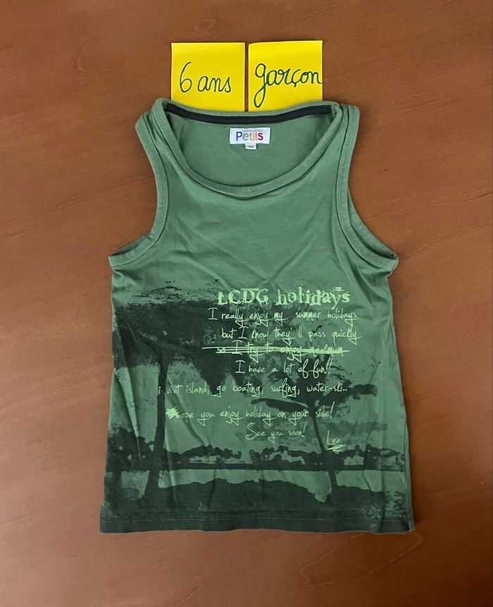 Bonjour, A vendre débardeur taille 6 ans de la marque La Compagnie des Petits : 1€ Il a été porté voir les photos Mis sur d’autres groupes de vente Regardez dans mon dressing j’ai des vêtements garçon du 3 mois à 10 ans Et des vêtements fille de la naissance à 4 ans