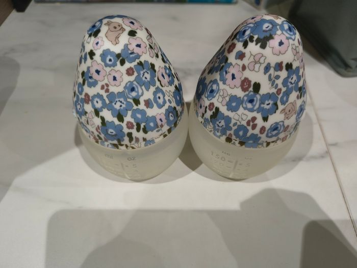 Deux biberons neufs seulement stérilisés à l'eau une fois 150ml , avec couvercle pour transformer en petit pot