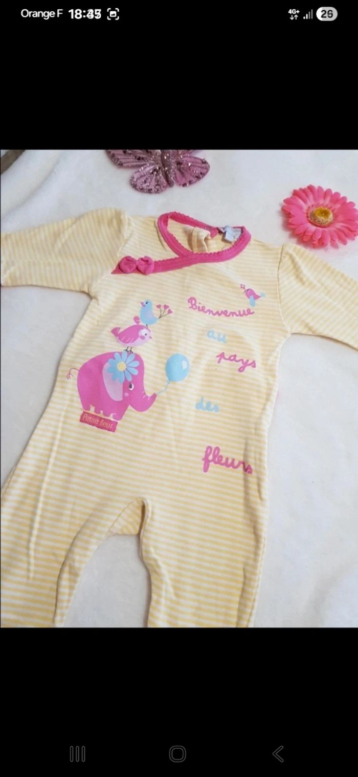 Lot comprenant 1 pyjama fin sans pieds 4 pyjamas fin avec pieds dont un avec body assorti 7 robes 1 ensemble T.shirt manches longues/ legging 1 ensemble body / short / bonnet 6 bodies 4 leggings 2 shorts 2 T.shirts 1 débardeur 1 pantalon 1 jupe 1 combinaison d été Lot de bandeaux Possibilité d avoir plus de photos Vous pouvez retrouver tous ces articles à l unité dans mon dressing
