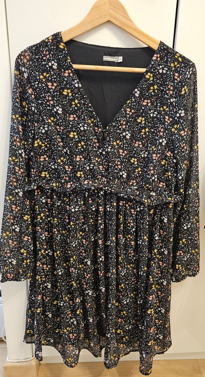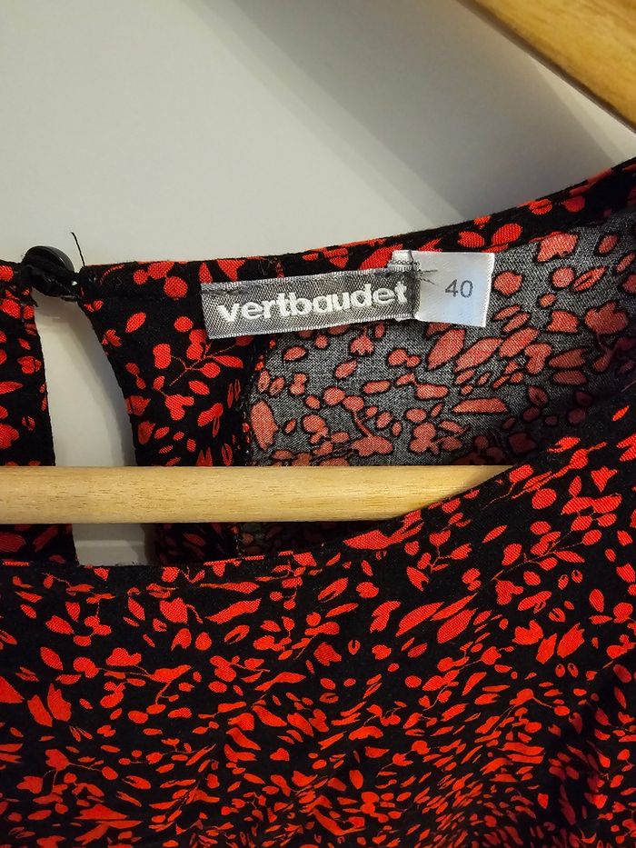 Ce lot de vetement de grossesse T40 est composé : - 1 robe vertbaudet fleurie 100% polyester - 1 robe vertbaudet noir et rouge 100% viscose - 1 robe vertbaudet bleu 95% viscose 5% elasthanne - 1 ceinture grossesse elastique 94% viscose 6% elasthanne - 1 jupe en jean
