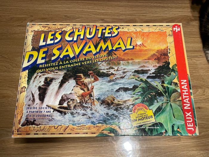 Jeu les chutes de Savamal Jeux Nathan 1997 Le jeu est complet et en bon état général cependant il manque une pirogue verte