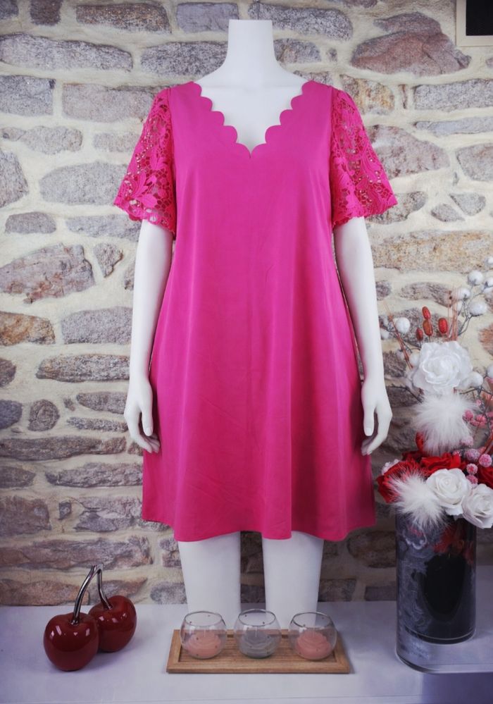 Robe rayonnante éclat fushia aux manches dentelle florale Femme taille 54 marque Asos 🌺  - photo numéro 1