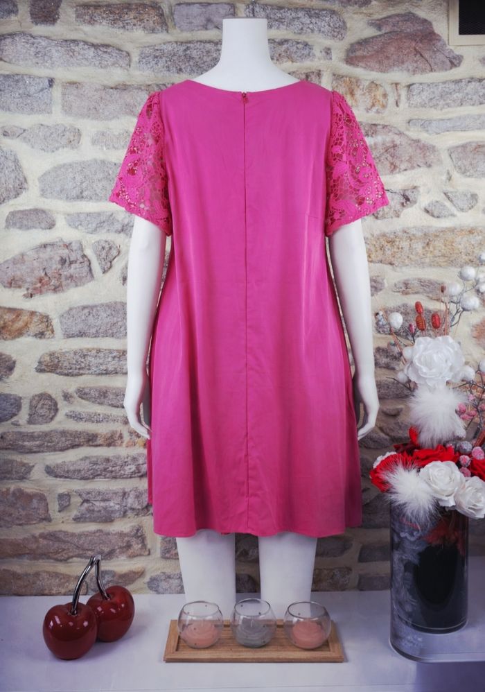 Robe rayonnante éclat fushia aux manches dentelle florale Femme taille 54 marque Asos 🌺  - photo numéro 2