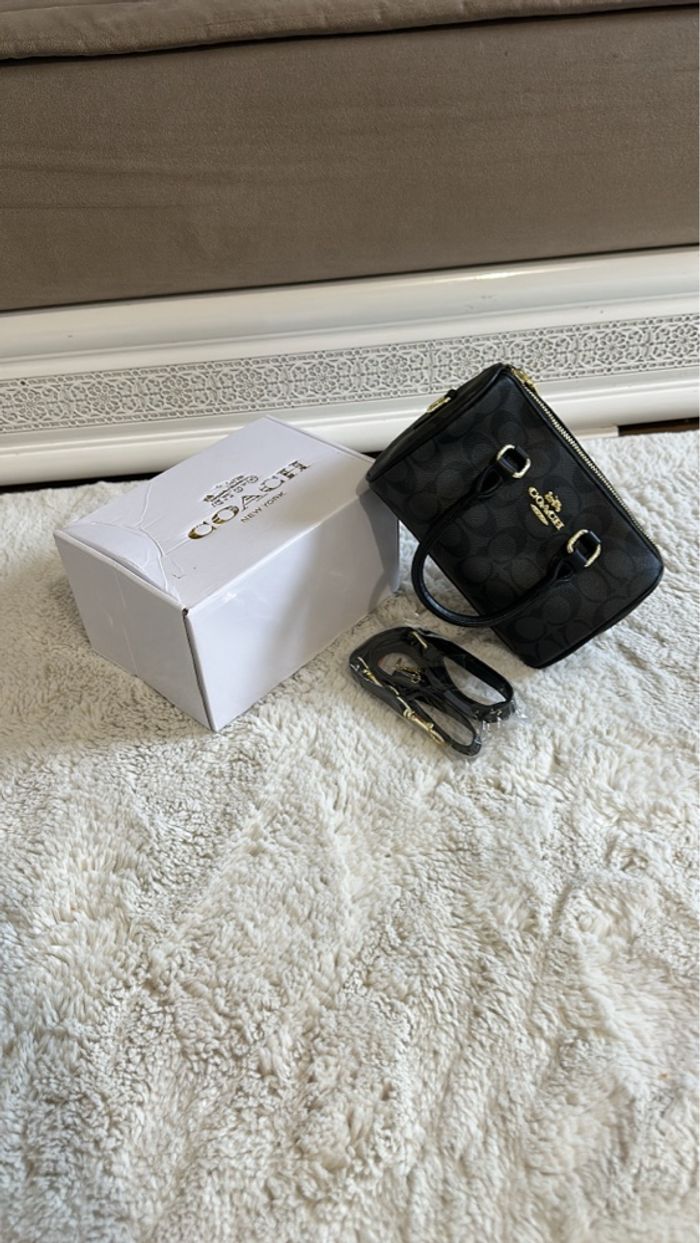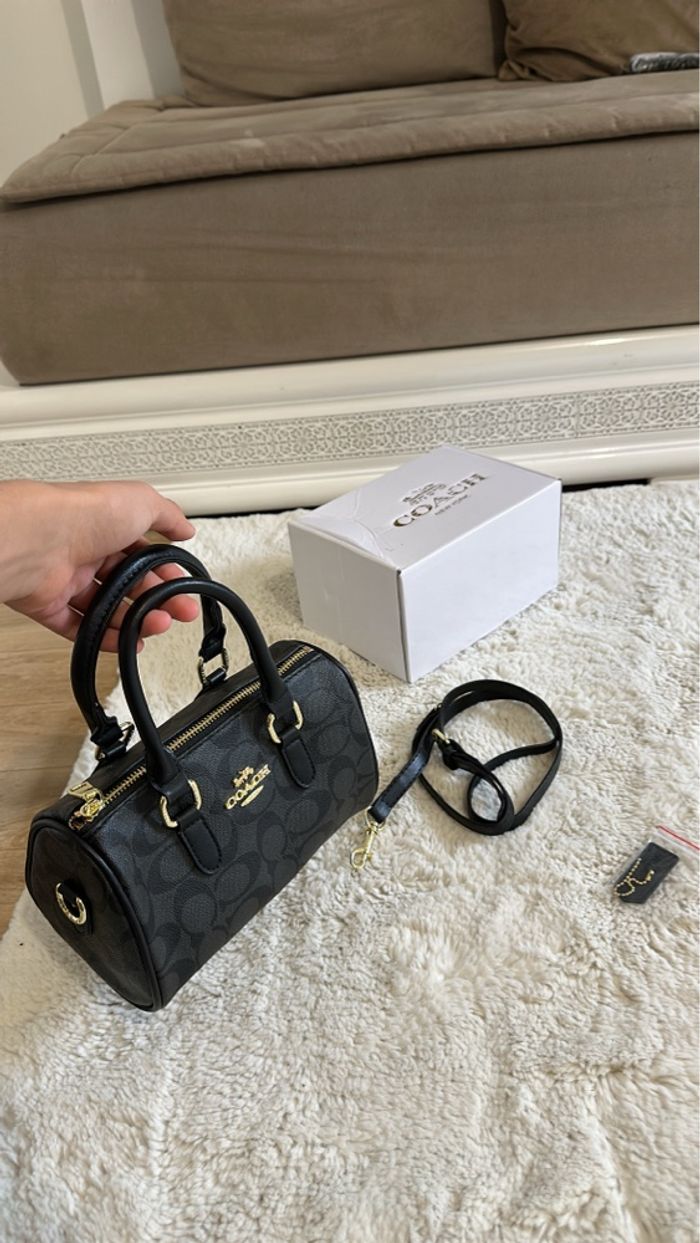 🖤 Sac Coach Boston avec bandoulière 🏷️ Neuf avec étiquette – jamais porté Sac Boston de chez Coach, réalisé en toile siglée et cuir de qualité, alliant design iconique et fonctionnalité. Il est doté de deux anses supérieures pour un porté main et d’une bandoulière amovible réglable pour un porté épaule ou croisé, parfait pour tous les jours. Son format compact mais pratique permet de ranger facilement l’essentiel tout en restant stylé. 🎨 Couleur : noir / signature classique 📐 Style : structuré et intemporel Coach, avec logo discret et finitions métalliques dorées 💼 État : neuf avec étiquette, jamais utilisé 📦 Expédition rapide et soignée sous 48 h 🗣️ Ouvert(e) aux offres raisonnables ⚠️ Toutes les étapes sont filmées (préparation du colis, emballage, envoi et livraison) pour une transaction sûre et transparente. 📩 Pour toute question, n’hésite pas à me contacter 🙂