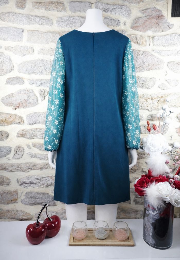 Robe élégante jardin enchanté vert sapin femme taille 54 marque Asos ✴️ Décolleté en V festonné ✴️ Manches longues en voile fleuri translucide ornées de motifs floraux blancs rehaussés de contours dorés pailletés ✴️ Coupe droite légèrement évasée ✴️ Couleur => Vert sapin ✴️ Composition => 95 % polyester 5 % elastanne ✴️ Longueur => 100 centimètres ✴️ Mesure épaules à épaules -> 43 centimètres ✴️ Tour de poitrine => 136 centimètres