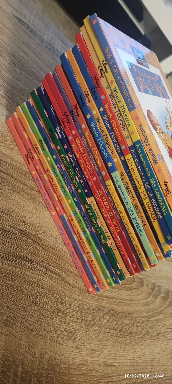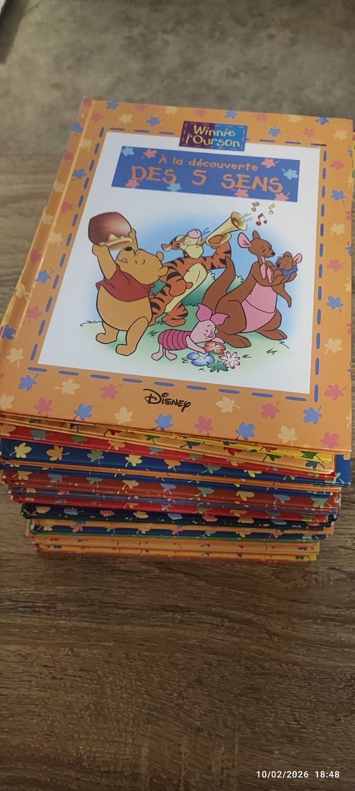Je vends un lot complet de 22 livres Winnie l’Ourson – Disney, en bon état général. Idéal pour compléter une collection ou pour les histoires du soir. 📌 Titres rares inclus : - Un festin de fruits qui feront grossir Tigrou - Des carottes pour tous ! 📘 Autres titres présents : À la découverte des 5 sens, des contraires, de la musique, des dangers, des rivières, de la nuit, de la maison des animaux, L’hiver dans la forêt, Tout ressemble à…, La préparation, Winnie et le mystérieux bonheur fleuri, etc. ✨ État : livres propres, pages complètes, pas de déchirures. Prix du lot : 20 € 📍 Remise en main propre. 📦 Envoi possible si besoin.
