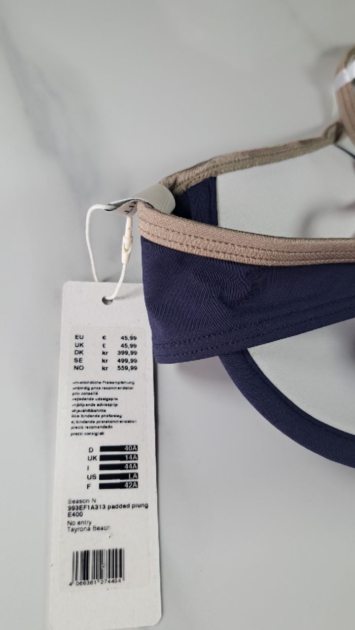 Marque : Esprit Taille française : 42A (tour de poitrine ≈ 88–92 cm, bonnet A – petit volume) Équivalent international : EU 42, UK 14, US 10 Style : Dos nageur Bretelles réglables : parallèles ou croisées dans le dos Bonnets rembourrés à armatures pour un maintien optimal Fermeture : agrafe Composition : 84% Polyamide, 16% Élasthanne (tissu stretch recyclé) Neuf avec étiquette 🏷 Envoi soigné et expédition rapide.