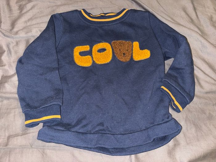 Pull avec cool fait en broderie et un O remplacer par un ours.