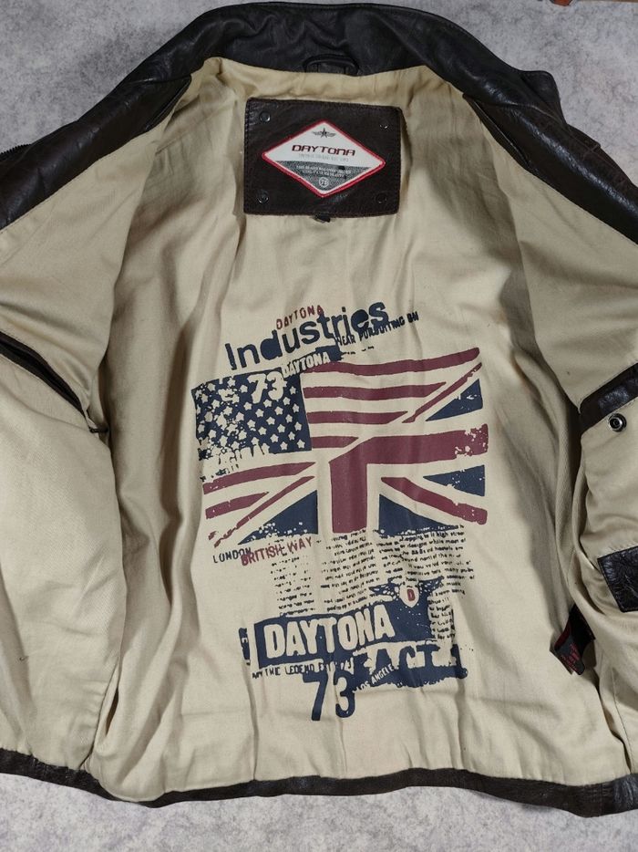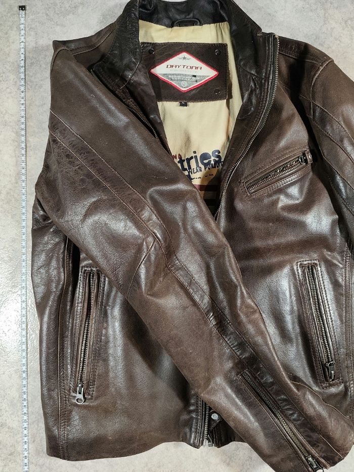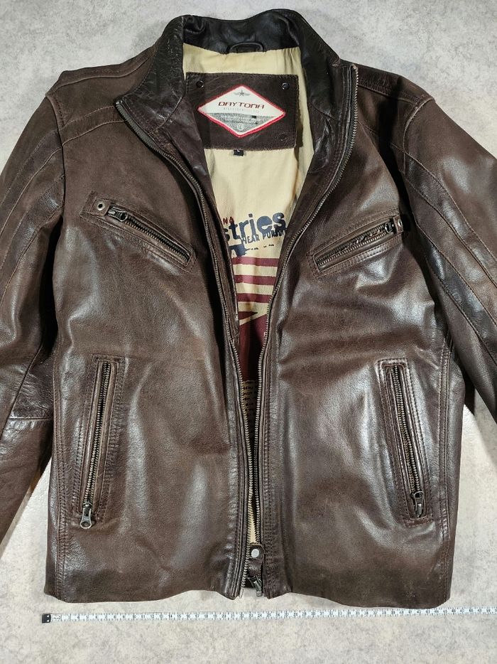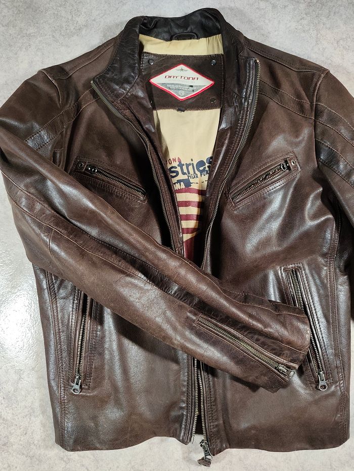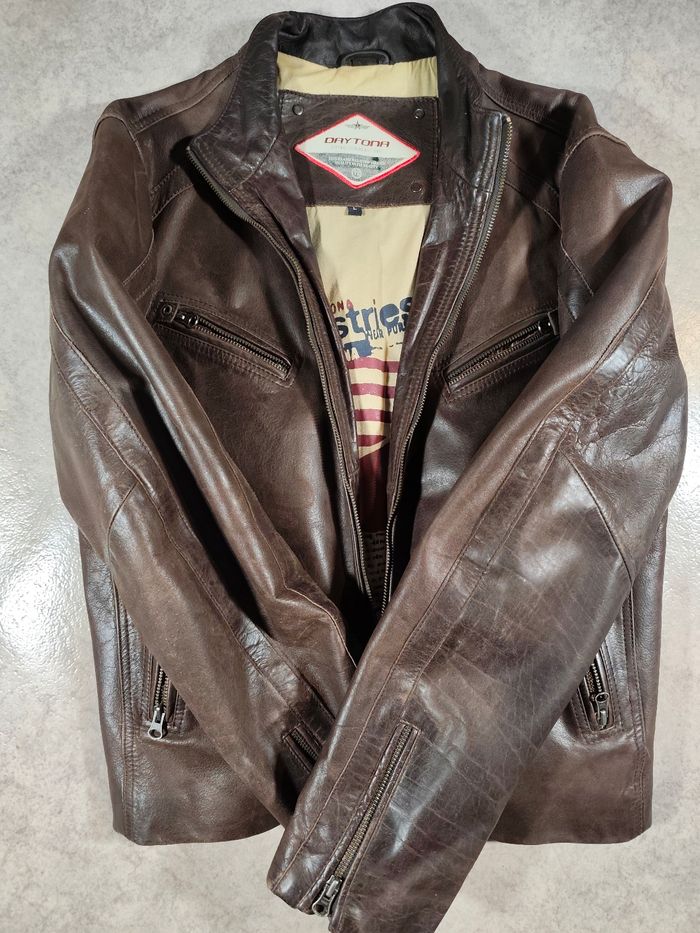 Blouson en cuir marron Daytona homme taille L vendu neuf 350€ parfait état la personne le portant faisait 1m77 pour 65/68 kg
