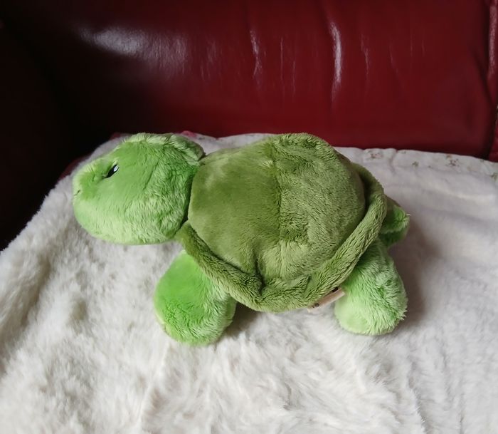 Peluche-doudou marque Planète nature. Petite Tortue 🐢 entièrement rembourrée; yeux brodés. Longueur maxi de 24 cm; hauteur maxi de 10 cm // voir photos pour détails