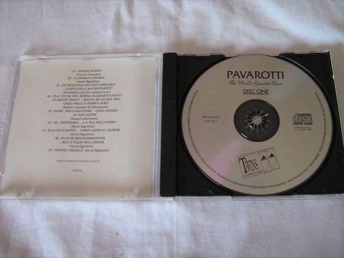 Vends CD Pavarotti - The World's Greatest Tenor - Disc 1. 1/ Nessun dorma (Puccini - Turandot) 2/ La donna e mobile (Verdi - Rigoletto) 3/ Oh meschina ! Oh fato orrendo ! ... Guisto cielo ah ! Rispondete ! (Donizetti - Lucia Di Lammermoor) 4/ Ola, chi sei che ardisci aggirarti furtivo in queste mura ? ... Soltoi ad un sol mio grido mille a punirti avrei (Bellini - I. Capuleti Ed Montecchi) 5/ Padre, mio caro padre ... ceda natura al suo autor (Mozart - Idomeneo) 6/ Ha, insperabile ... E il sol dell'anima (Verdi - Rogiletto) 7/ Ella mi fu rapita ... parmi verder le lacrime (Verdi - Rigoletto) 8/ Un di se ben rammentomi ... Bella figlia dell'amore (Verdi - Rigoletto) 9/ Partite ? Crudele ! (Verdi - Rigoletto) Pour plus de choix, allez voir mes autres annonces.