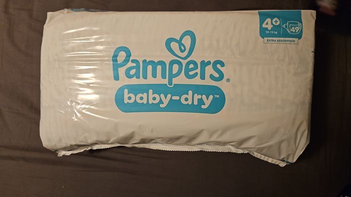 Je vends un paquet de 49 couches Pampers 4+ baby-dry à 10 euros. Neuf Jamais ouvert.