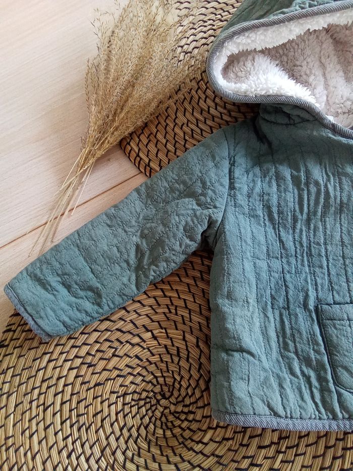 Veste mixte kaki en gaze de coton doublée fourrure Zara taille 9/12 mois - photo numéro 1