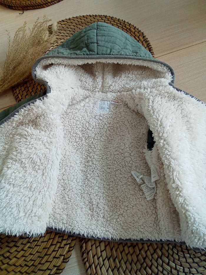 Veste mixte kaki en gaze de coton doublée fourrure Zara taille 9/12 mois - photo numéro 3