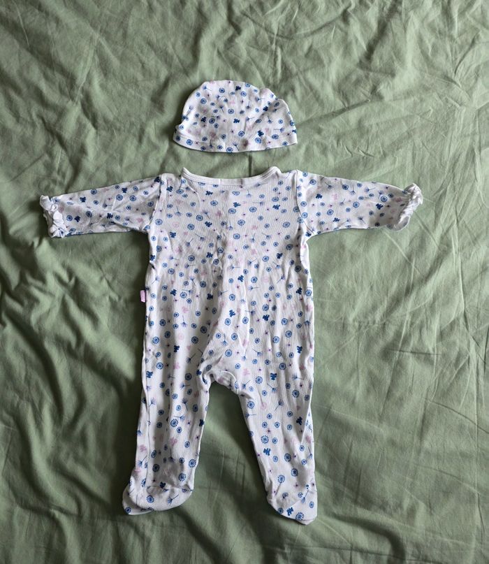 LuluCastagnette Lot Pyjama Bonnet Body Coton Blanc Rose 3 mois - photo numéro 5