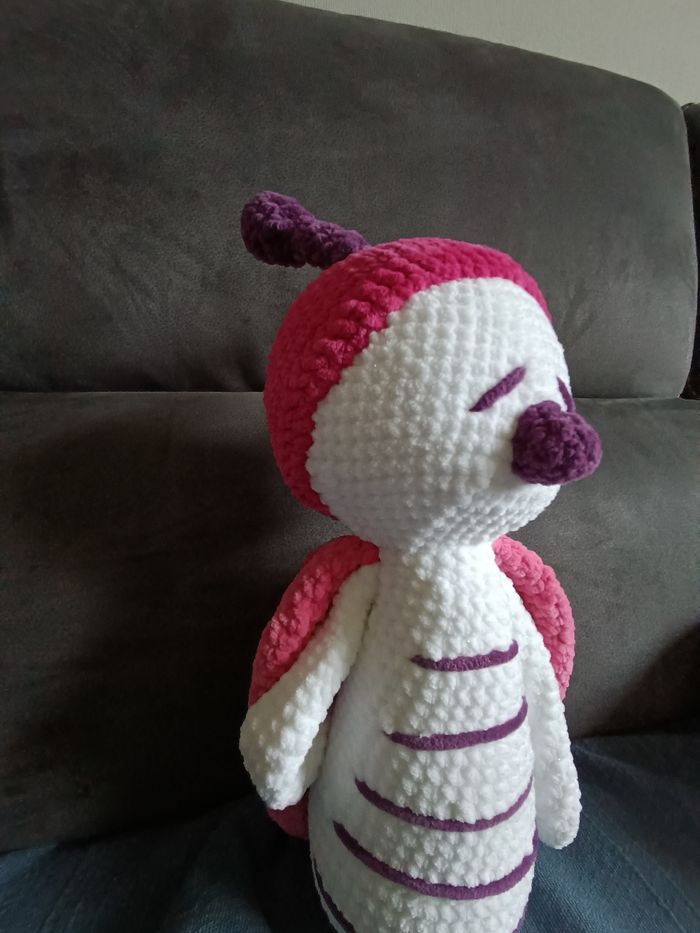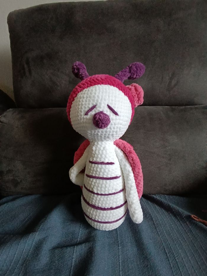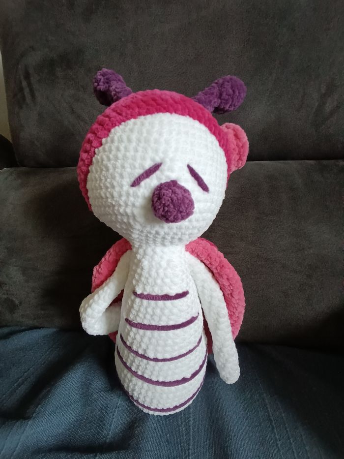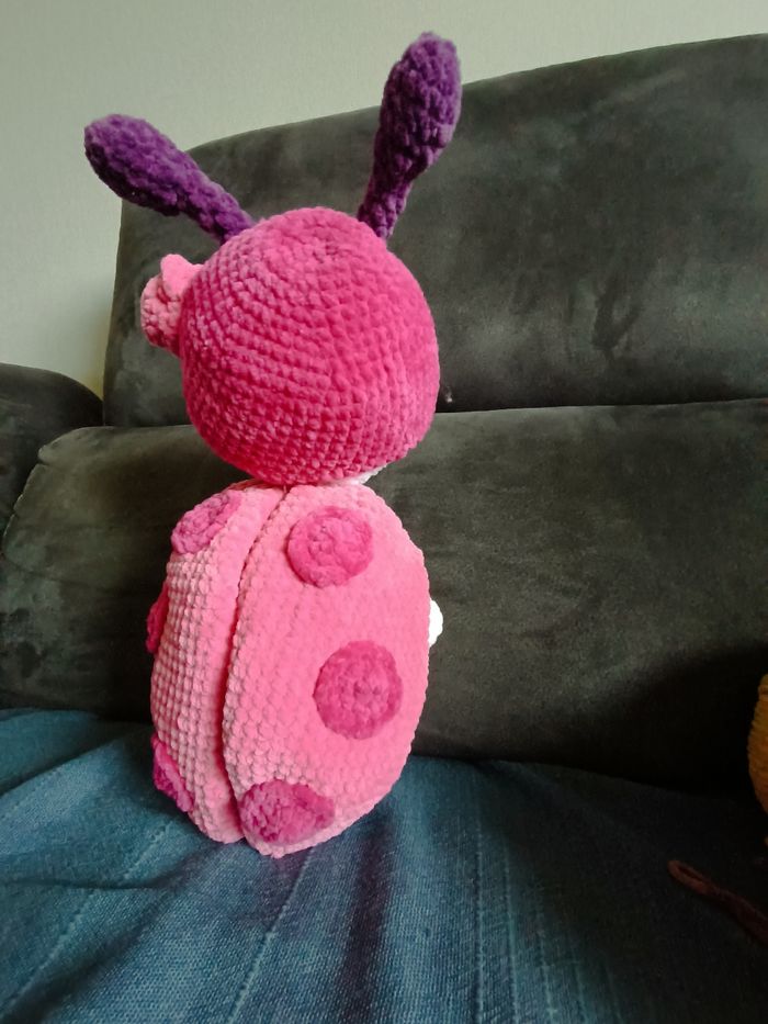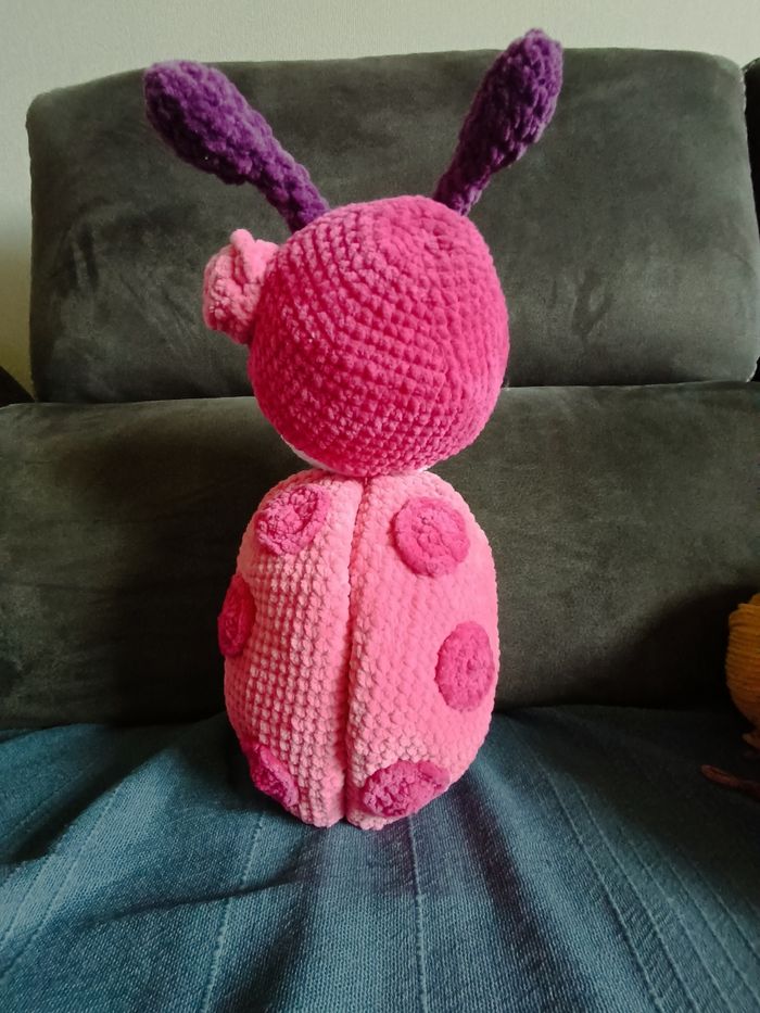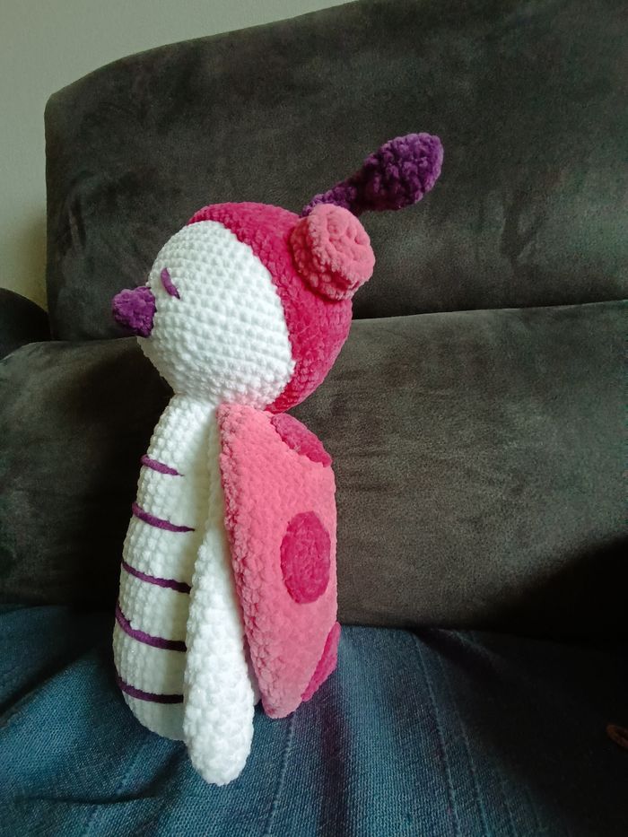 Fil chenille 100 % polyester Rembourrage 100% synthétique 36 cm de hauteur environ Rose blanc violet Coccinelle peluche amigurumi