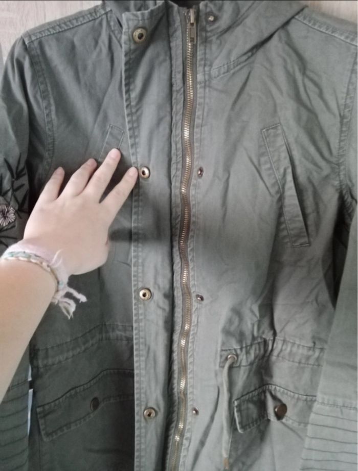 Menteau 14ans Kaki détail fleurs
