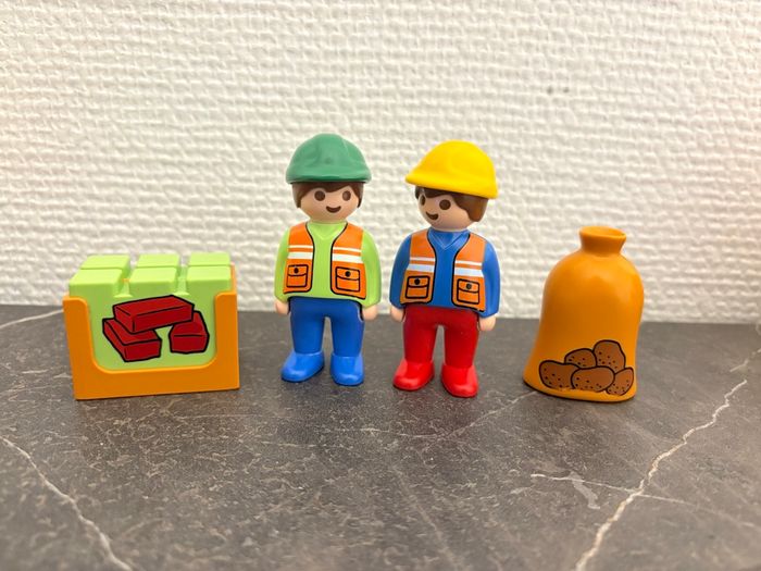 Lot de 2 véhicules de chantier avec ses personnages et accessoires de la marque Playmobil 123 Playmobil 123 en très bel état général, Voir les photos pour plus de détails