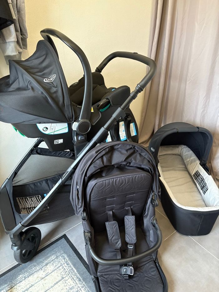 Je vends ma poussette Graco avec le cosy, le berceau, l’assise, l’anti pluie et l’isofix Très bon état général sauf en bas de la poussette sur la plastique éraflé à cause de l’ouverture fermeture de la poussette N’hésitez pas à me contacter pour plus de photos et d’informations Remise en main propre en Seine et Marne près de Melun et aux alentours