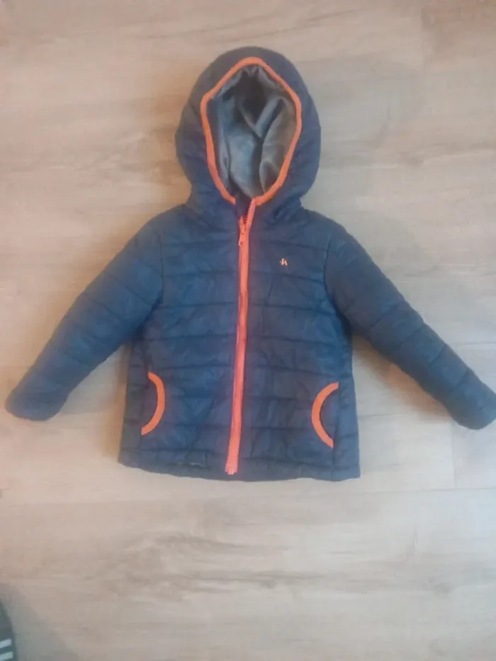 👦 doudoune légère à porter mais bien chaude de la marque Decathlon 👦 Taille 2 ou 3 ans 👦 Bleue marine avec des liserai orange 👦Le plus de cette doudoune est la capuche en doudoune également 👦 Très bon état, le logo un peu effacé