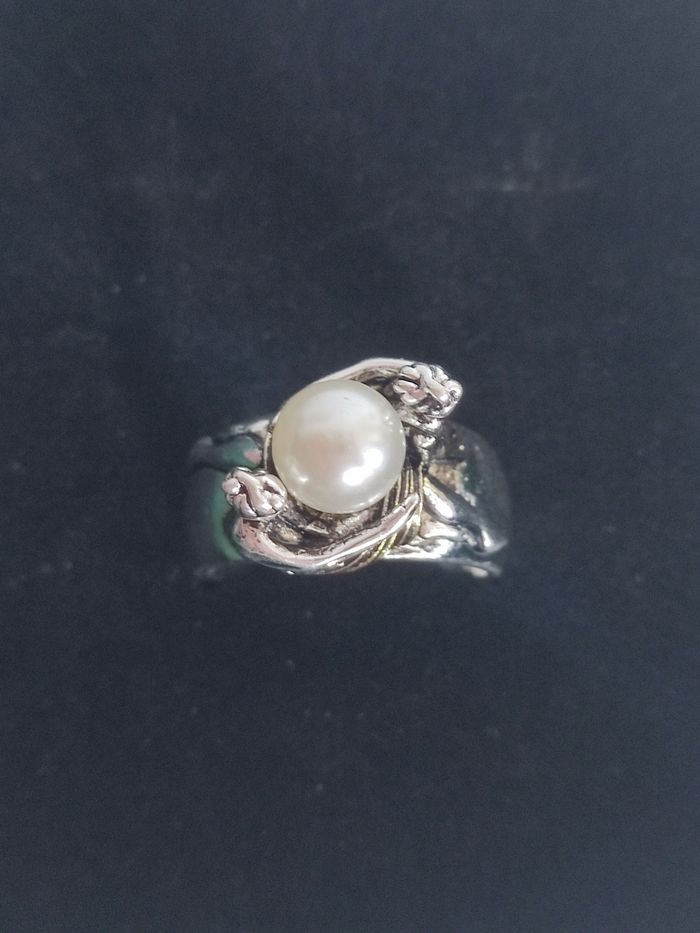 Bague argentée originale perle femmes romantisme 7 17.3mm neuve avec pochette - photo numéro 1