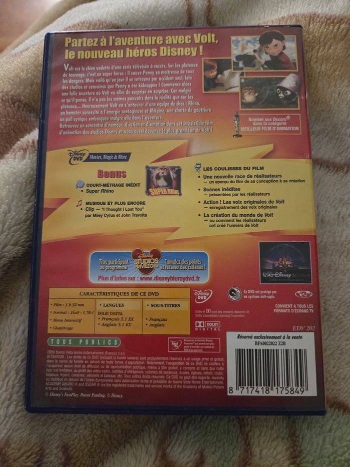 Je vends le film d'animation Disney "Volt, star malgré lui" en DVD. - Type de produit : DVD - Titre : Volt, star malgré lui - Type de contenu : Film d'animation - Réalisateur : Byron Howard, Chris Williams - Bonus inclus : Super Rhino, Scènes coupées, Clip - "I Thought I Lost You" Très bon état. Le DVD ne présente aucune rayure ni défaut. N'hésitez pas à me contacter pour plus d'informations. Bon visionnage !