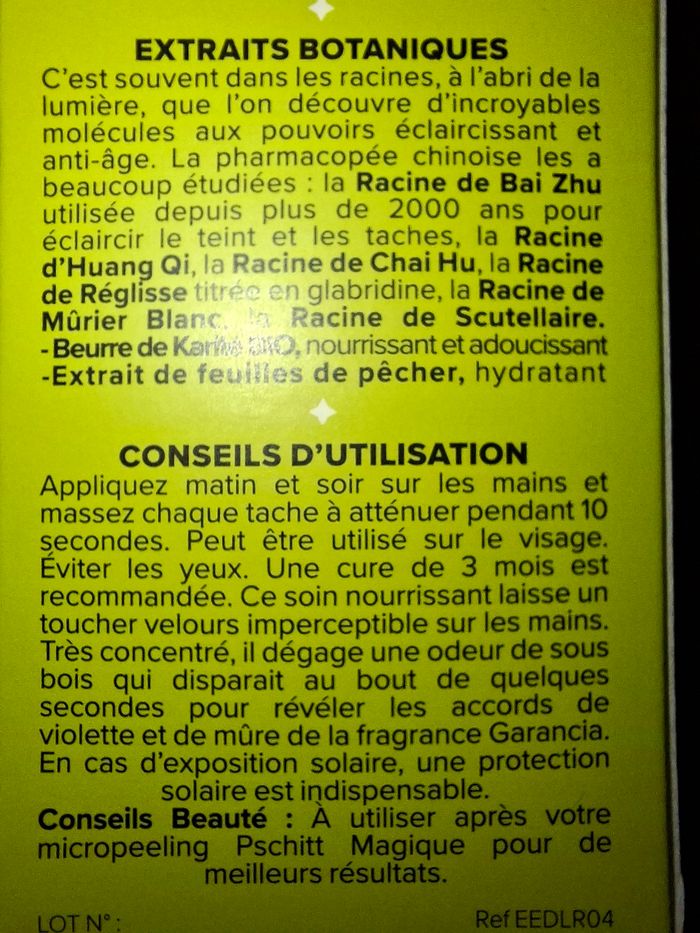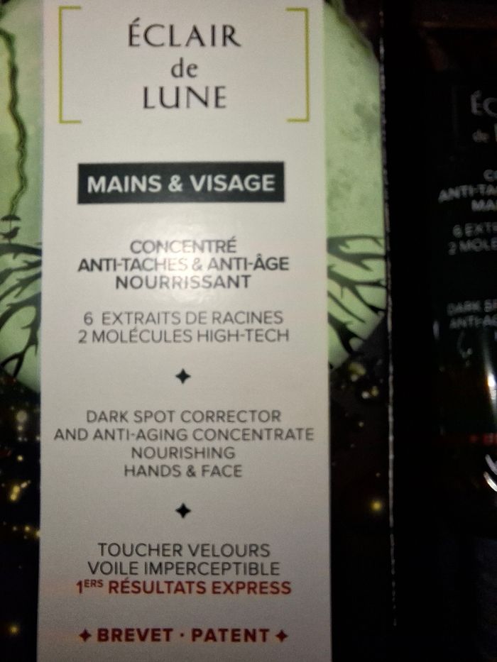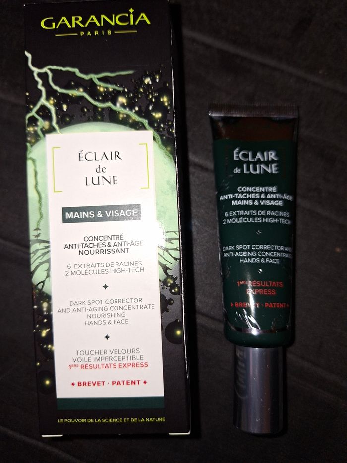 Vends concentré Éclair de Lune de la célèbre marque Garancia Paris, un soin double action (mains et visage) à l'efficacité prouvée. ​Actions : Agit efficacement contre les taches brunes et le vieillissement cutané tout en nourrissant la peau. ​Innovation : Formule exclusive ExtrabrightXL combinant 2 molécules High-Tech brevetées et 6 extraits de racines (Bai Zhu, Huang Qi, Réglisse, etc.) issus de la pharmacopée chinoise. ​Résultats : Éclaircissement visible dès 7 jours. 100% des testeurs ont constaté une peau plus homogène après 3 mois. ​Texture : Toucher velours, voile imperceptible et sans silicone. ​Engagement : 95% d'ingrédients d'origine naturelle, fabriqué en France 🇫🇷. ​État : Neuf, vendu avec sa boîte d'origine. ​Contenance : Tube de 30 ml. ​Un indispensable pour unifier son teint et protéger ses mains avec une odeur délicate de sous-bois, violette et mûre.