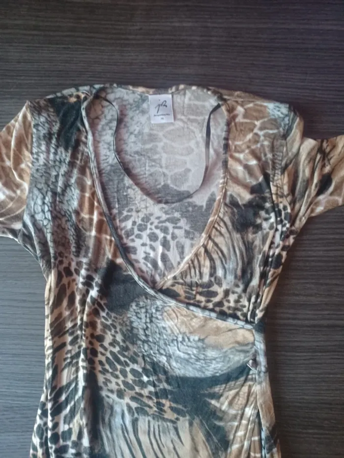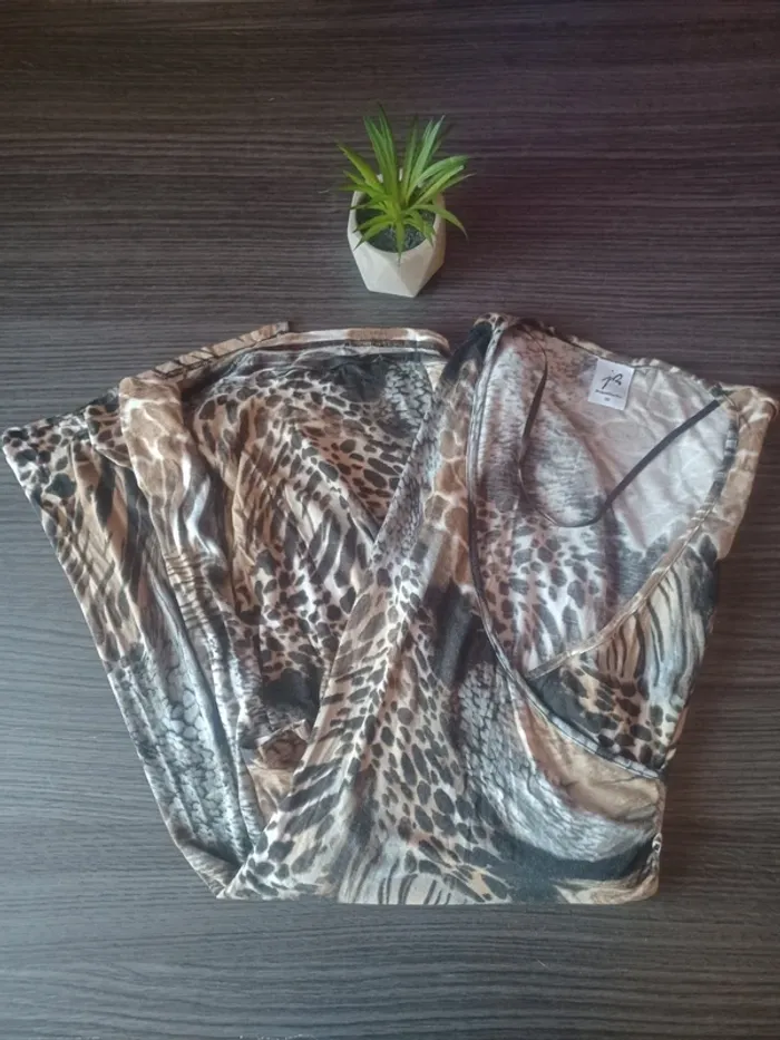 🤎Robe légère🤎 JACQUELINE RIU Peu porté Très bon état Largeur épaules 38cm Largeur aisselle à aisselle 45cm Longueur des manches 59cm Longueur 100cm