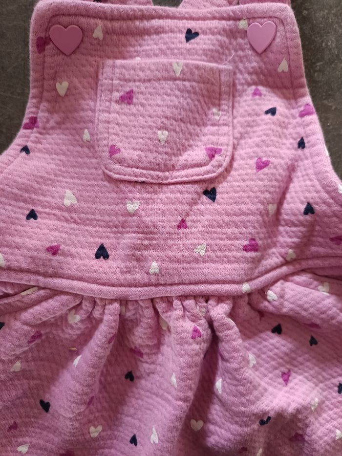 Robe salopette rose avec coeurs blancs, roses et noirs, NEUVE jamais portée ! Taille 12 mois