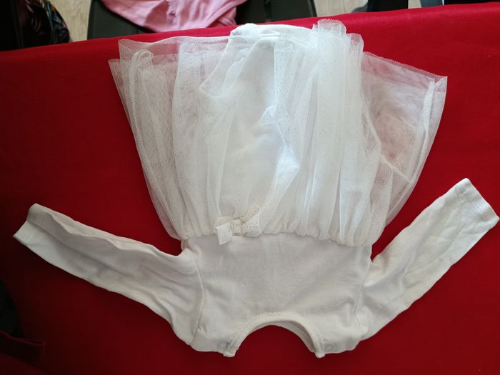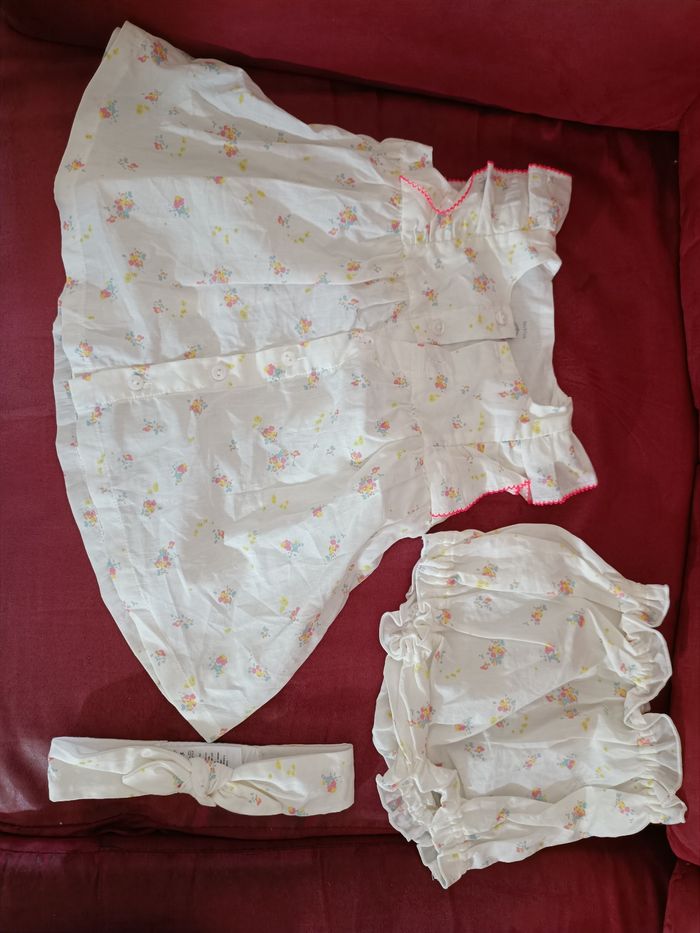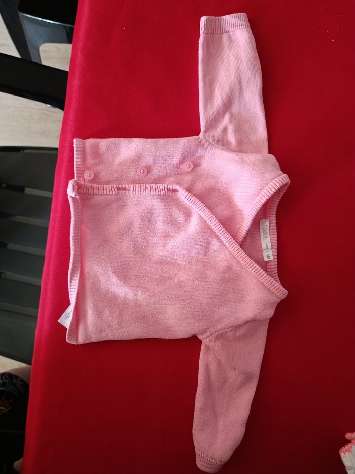 Ensemble bébé, plusieurs tailles. 1 mois : 2 pantalons, 1 robe, 1 pyjama léger, 1 gilet 6 mois : 1 robe, 1 salopette, 1 tee-shirt manches longues, 1 robe avec culotte et bandeau 12 mois : manteau Kiabi, petit bateau, Disney ....