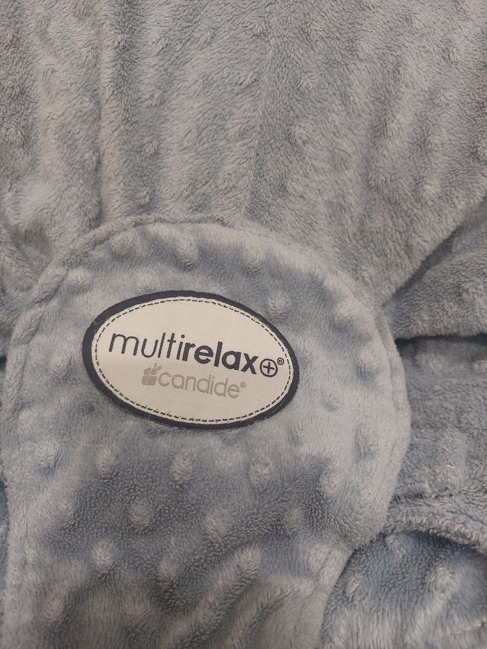 Coussin d'allaitement et de grossesse, coussin pour bébé 3 en 1 Multirelax Fonction de clip pour tenir le bébé et pressions pour tenir les deux côtés du coussin afin que bébé soit bien maintenu Tissu minky à pois bleu Déhoussable Très bon état Marque : candide