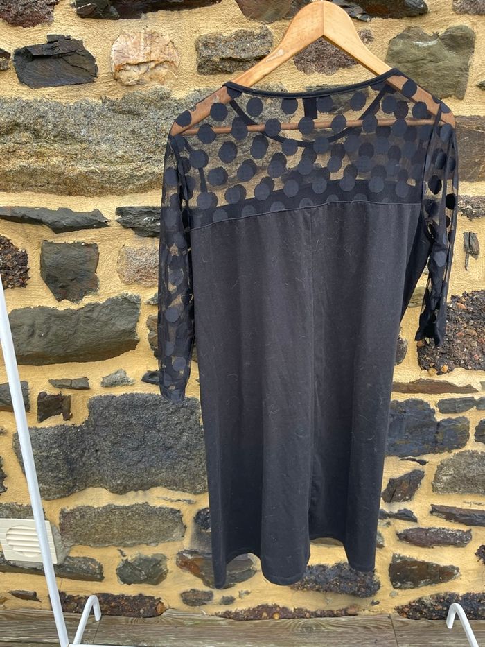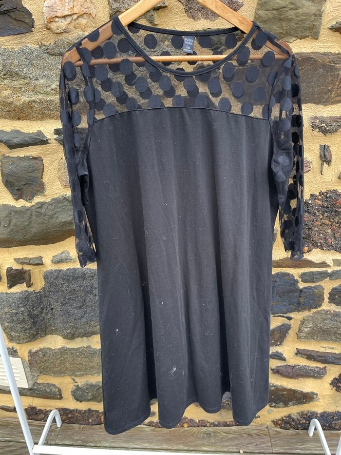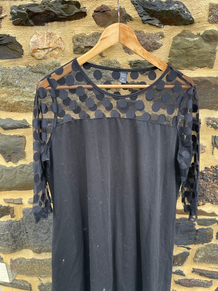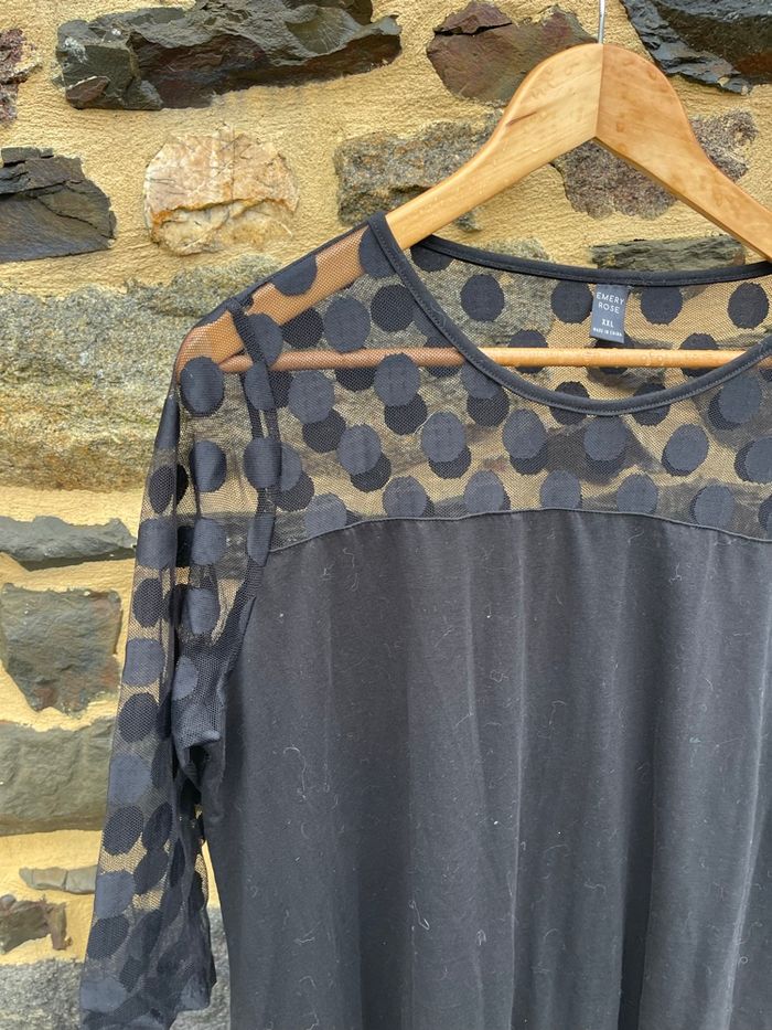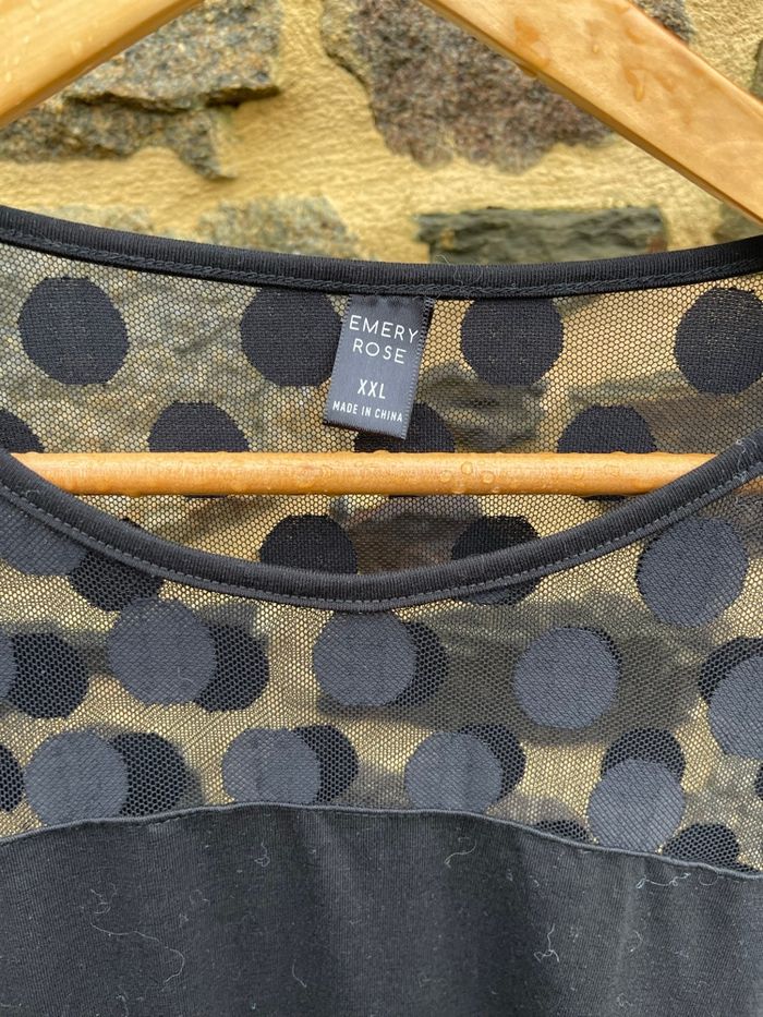Robe noir à manche 3/4 avec encolure à pois transparente. Taille XXL Emery Rose Très bonne état