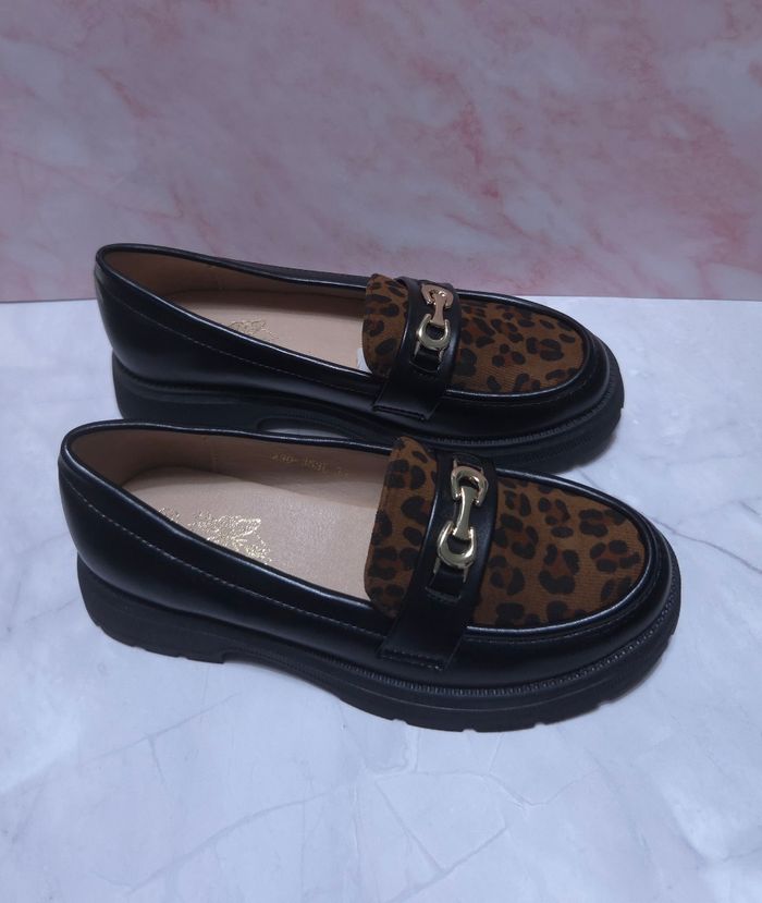 Mocassins Fille Léopard & Noir - Chic Boucle Dorée - Neufs Taille 33 - photo numéro 1