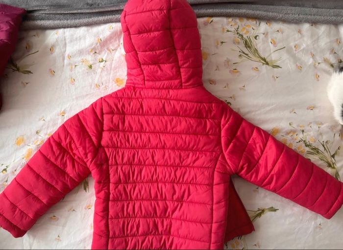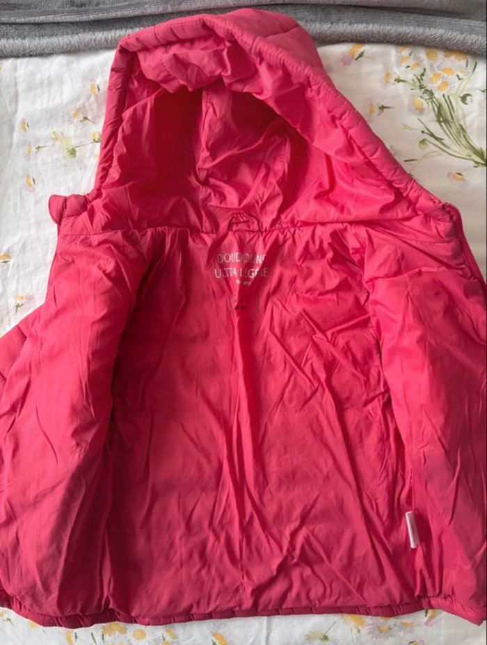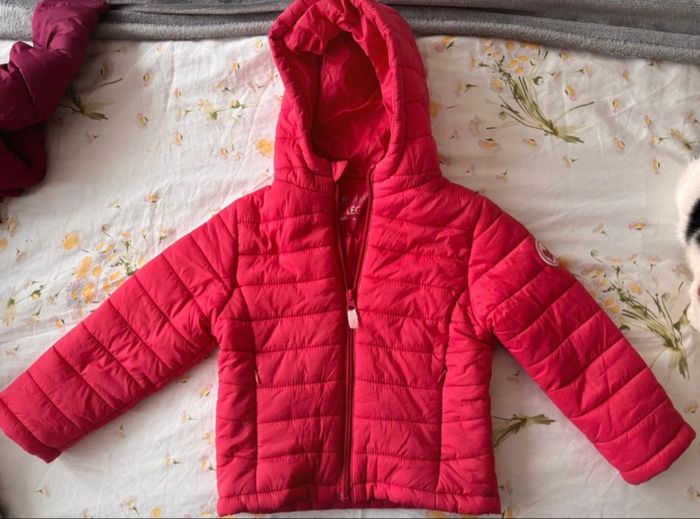 Vends doudoune pour fille, taille 4 ans. C'est un modèle ultra léger, idéal pour la mi-saison ou les journées fraîches de printemps. • Couleur : Rose vif / Framboise. • Détails : * Capuche intégrée. • Fermeture éclair (zip) sur toute la longueur avec protection au menton. • Petit écusson décoratif en forme de papillon sur la manche. • Deux poches latérales invisibles. • État : Très bon état général. Propre, sans accroc ni tache. Envoi rapide et soigné ‼️Photo et vidéo de l’emballage avant envoi‼️ N’hésitez pas à regarder le dressing 🤩