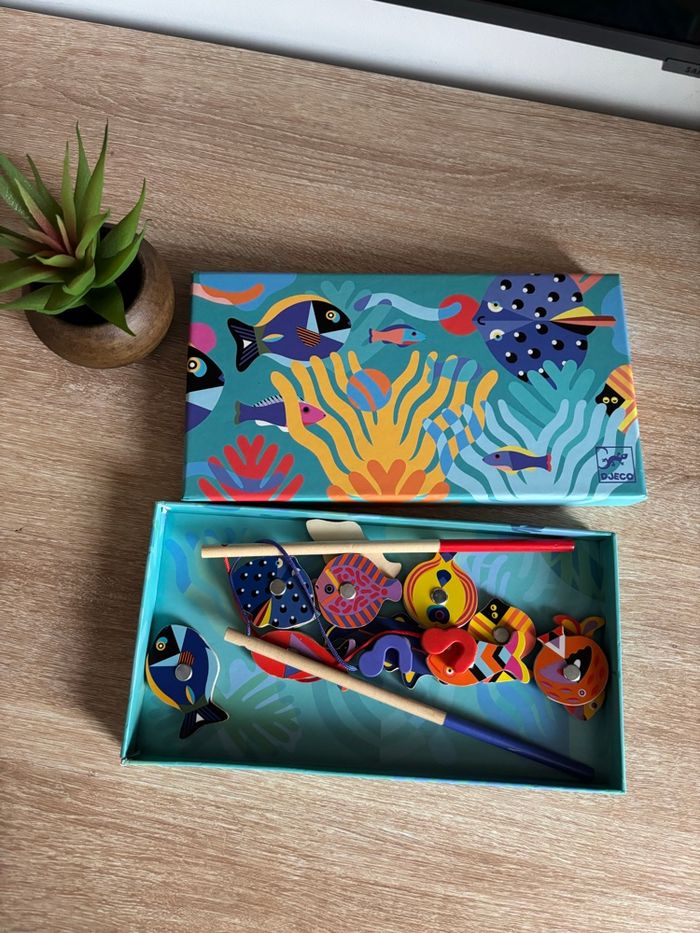 Jeu pêche a ligne en bois djeco Juste boîte abîmé à l’intérieur