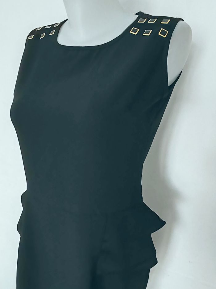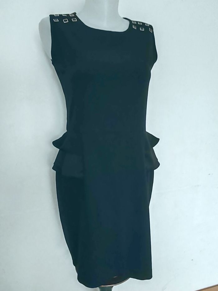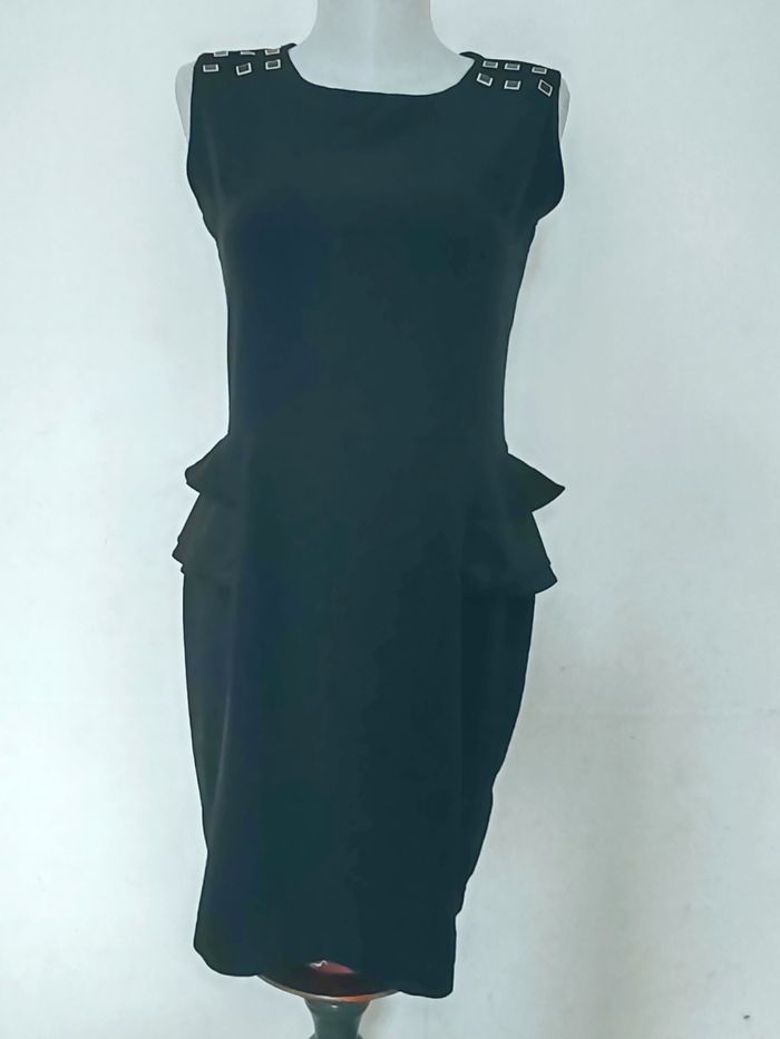 Très bon état, très stretch, pas d'étiquette de taille, mesures a plat : largeur sous aisselles 50, largeur à la taille 40, longueur 89. Superbe robe noire femme, sobre et chic, parfaite pour une soirée, un événement ou le bureau selon les accessoires. ✨ Détails : Couleur : noir profond Coupe droite et structurée, très flatteuse Sans manches Détails cloutés discrets aux épaules pour une touche moderne et élégante Volants subtils sur les côtés type peplum, qui mettent la silhouette en valeur Longueur genoux environ, Doublure dans la partie basse de la robe. Fermeture zippée dans le dos. 👠 À porter avec des escarpins pour une tenue chic ou avec une veste pour un look professionnel.