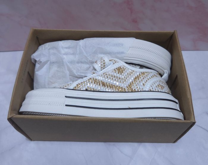 Baskets Fille Blanches & Dorées - Style Tweed Chic - Neuves Taille 28 - photo numéro 5
