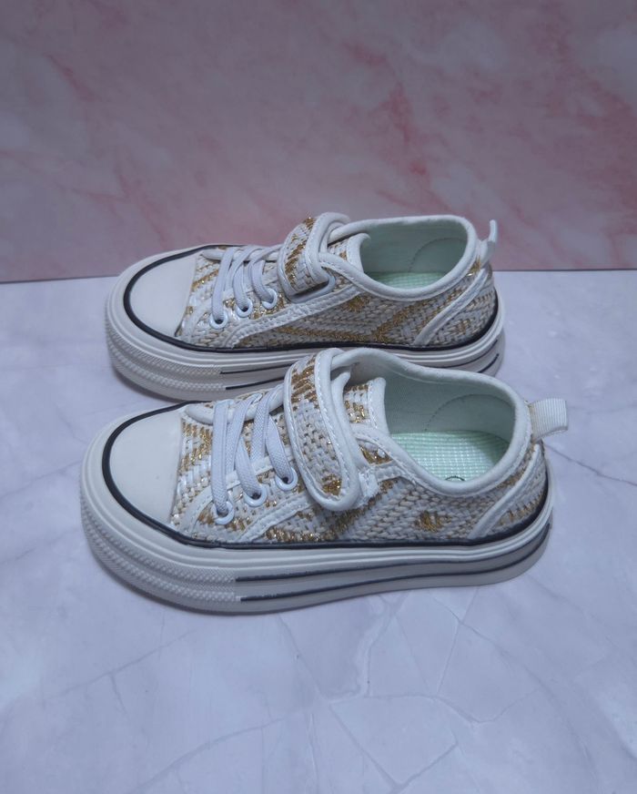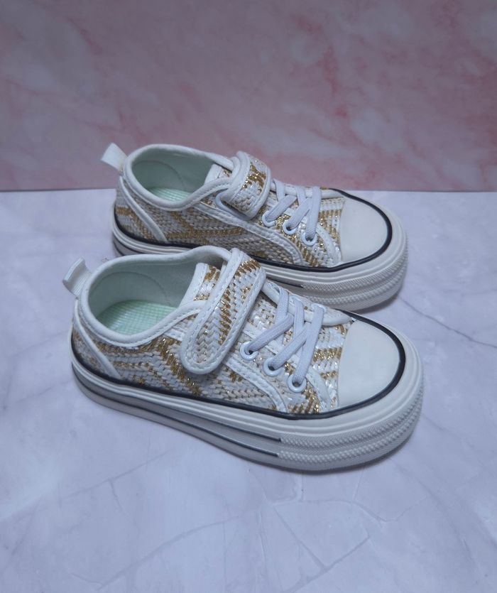 Baskets Fille Blanches & Dorées - Style Tweed Chic - Neuves Taille 28 - photo numéro 1