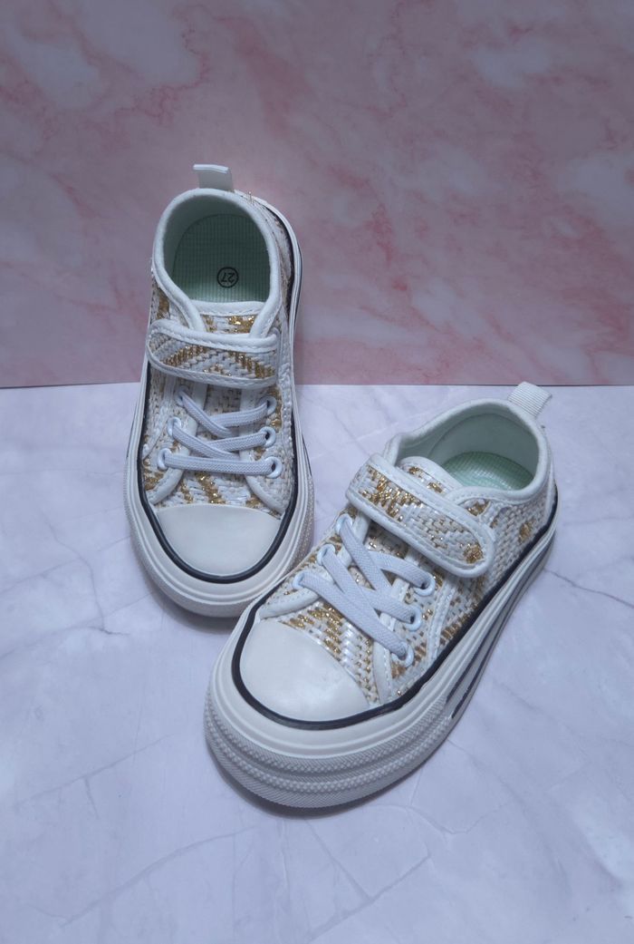 Baskets Fille Blanches & Dorées - Style Tweed Chic - Neuves Taille 28 - photo numéro 2