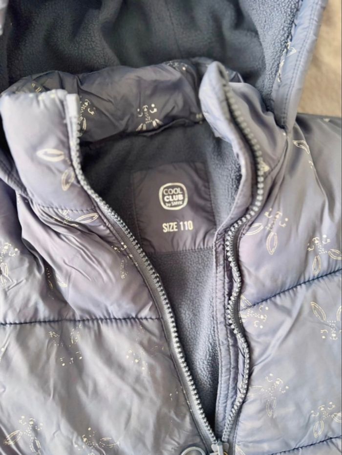 Vends jolie doudoune matelassée pour enfant de la marque Cool Club by Smyk. Elle est de couleur bleu gris avec d'adorables motifs de têtes de lapins argentés/irisés. • Taille : 110 cm (environ 5 ans). • Couleur : Bleu/Gris avec imprimés discrets. • Confort : Entièrement doublée en polaire grise à l'intérieur pour garder bien au chaud. • Détails : * Fermeture éclair fonctionnelle avec protection au menton. • Deux poches latérales. • Capuche intégrée (également doublée polaire). • État : Très bon état général. Propre et prête à être portée. Maison non-fumeur. Envoi rapide et soigné ‼️Photo et vidéo de l’emballage avant envoi ‼️ N’hésitez pas à regarder le dressing 🤩
