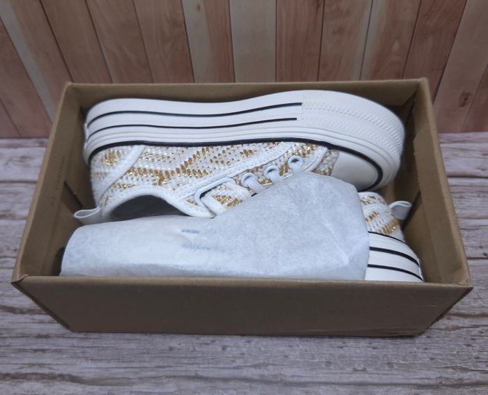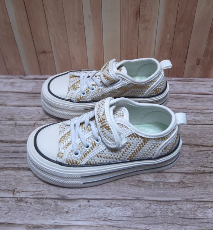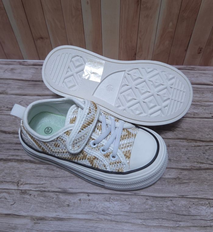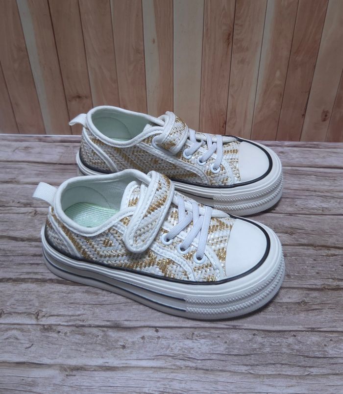 Baskets Fille Blanches & Dorées - Style Tweed Chic - Neuves Taille 29 - photo numéro 1