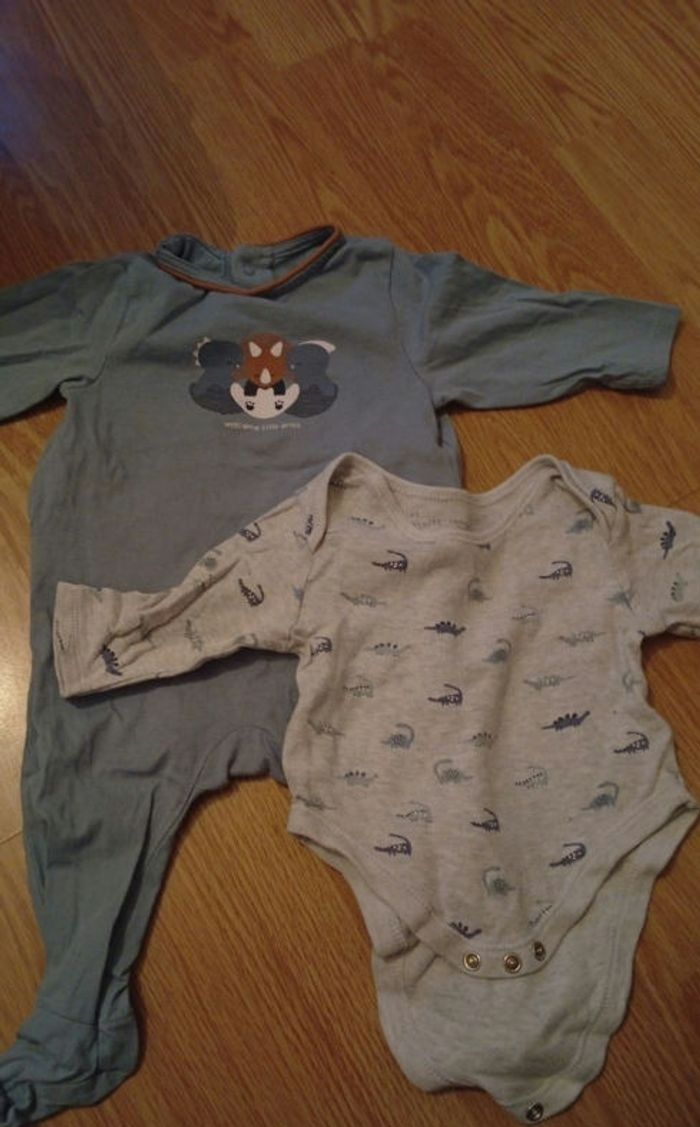 Lots pyjamas et body dinosaures Pyjama Obaibi taille 6 mois Body Primark 6 mois