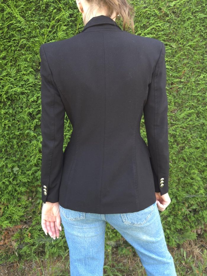 🧥 Veste blazer femme – Mango Élégante veste blazer Mango couleur noir, coupe structurée et très chic ✨ Un indispensable du dressing, parfait pour un look classe, bureau ou soirée. ✨ Détails : Coupe cintrée et structurée Col tailleur Double boutonnage avec boutons dorés Manches longues avec boutons décoratifs aux poignets Poches décoratives Tombe parfaitement bien portée 📏 Taille : XS 🎨 Couleur : noir 👕 État : très bon état (voir photos) 🏠 Maison non-fumeur 📦 Envoi rapide et soigné 💬 N’hésite pas si tu veux des mesures ou infos supplémentaires