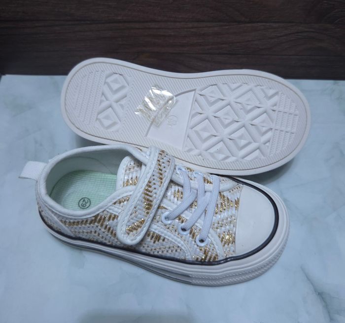 Baskets Fille Blanches & Dorées - Style Tweed Chic - Neuves Taille 30 - photo numéro 2