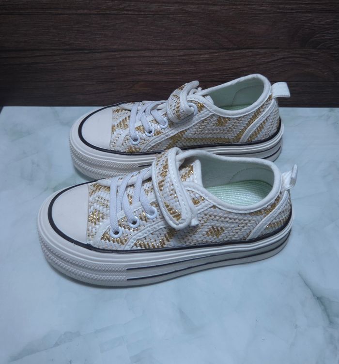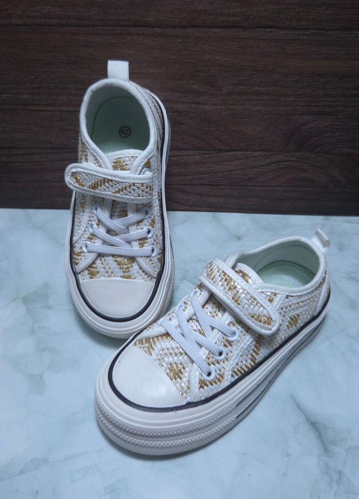Baskets Fille Blanches & Dorées - Style Tweed Chic - Neuves Taille 30 - photo numéro 1